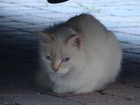parkirišču je bila bela modrooka mucica … verjetno nam je bila namenjena.