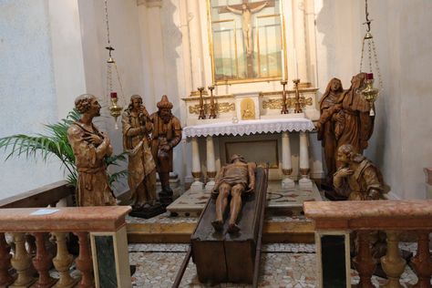hodnika, razstava jaslic in skrivnosti rožnega venca . V restavraciji