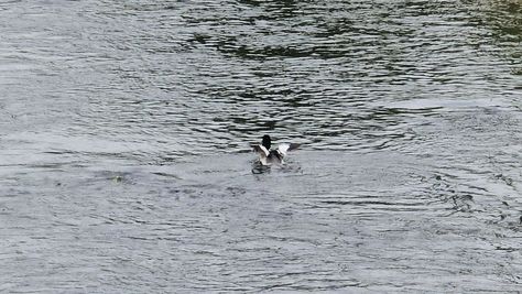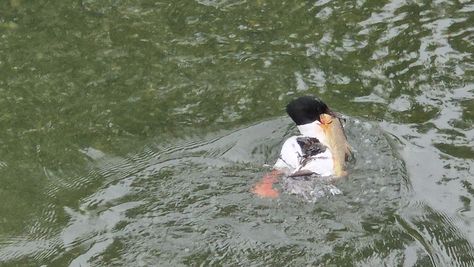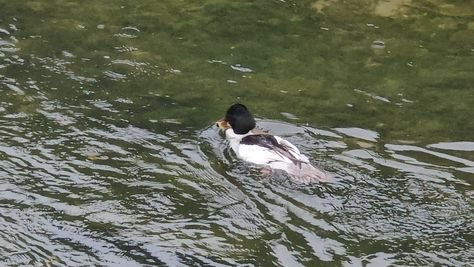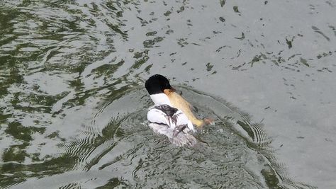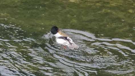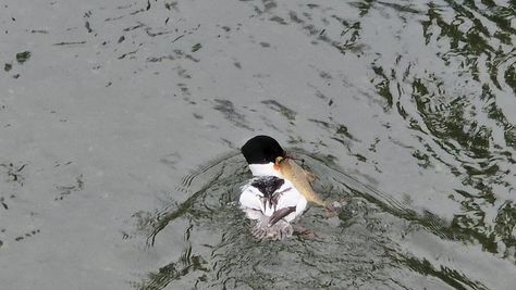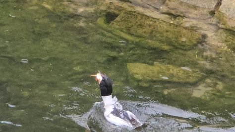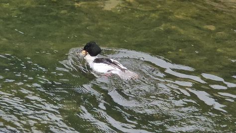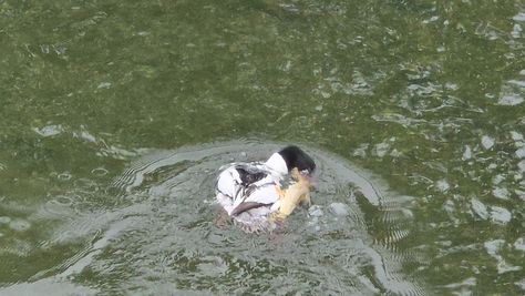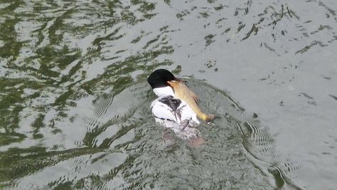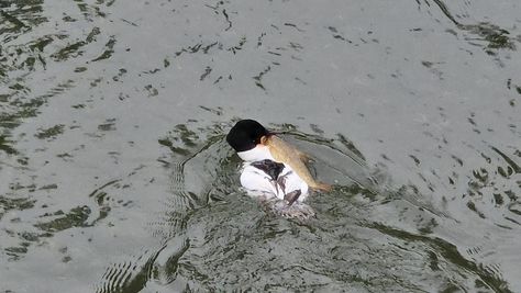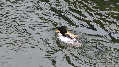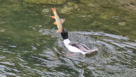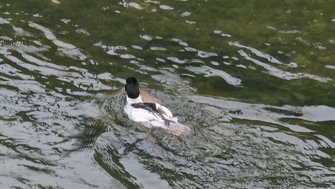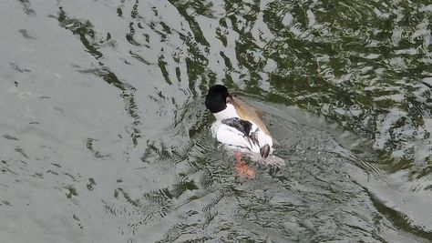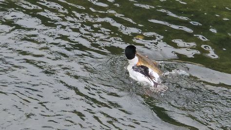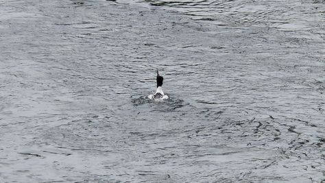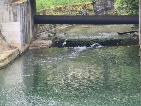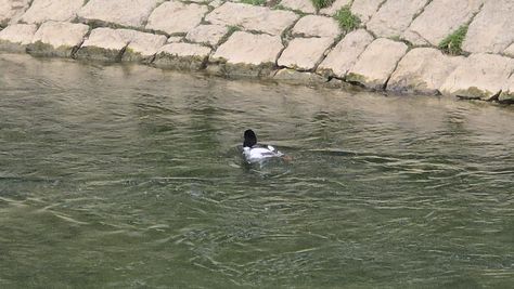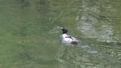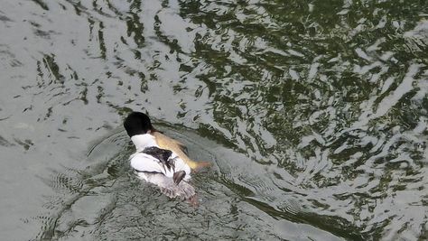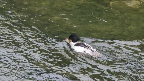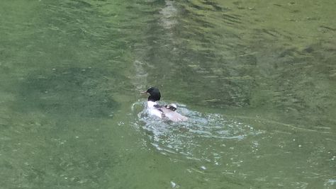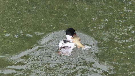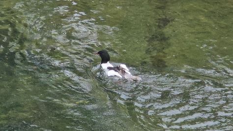 Popoldne v ZD Moste iskat napotnico za mamo. Tja čez Botanični vrt, grajsko planoto in mimo Sv. Jožefa do Ljubljanice … pogledat, če je slučajno cerkev na Kodeljevem odprta … ravno upokoj. beograjski nadškof je imel obisk in je bil v cerkvi … nazaj še do sotočja Gruberjevega kanala in Ljubljanice – obenem še pogledat, če je kje kakšen vodomec … še lepše, nazaj grede je veliki žagar lovil ribe, naenkrat poskočil potem pa podvodno šibal za ribo … in potem sta prišla ven … kaj če mladosten samec s tako veliko ribo … Nazaj z vzpenjačo … a je bila vrsta, kar ob stolnici in čez Staro Ljubljano … ob Ljubljanici do Špice, v Botanični vrt – siva čaplja lovila riba … potem pa proti domu. ob poti