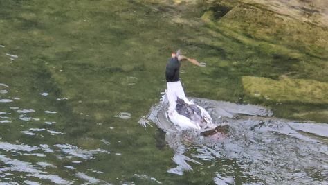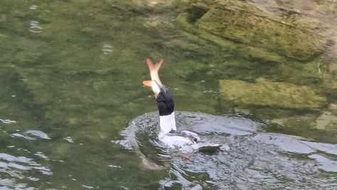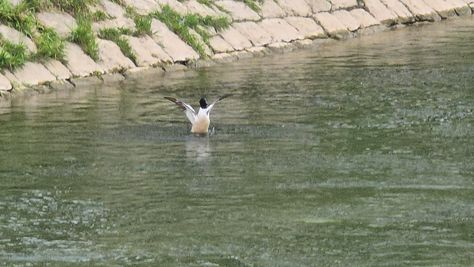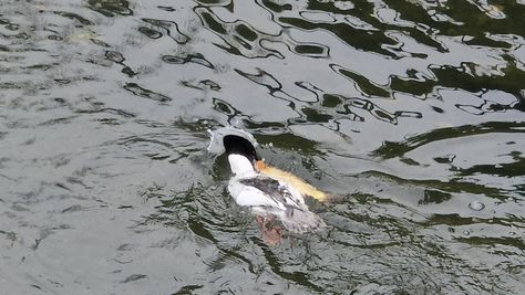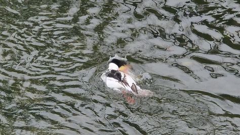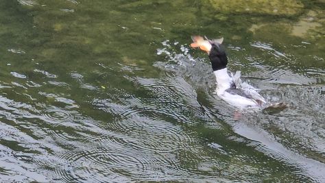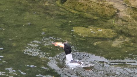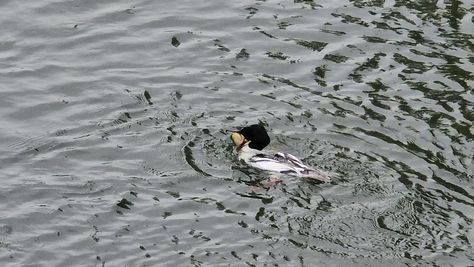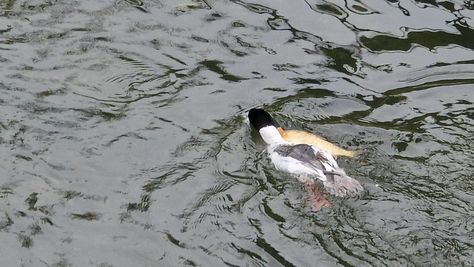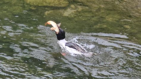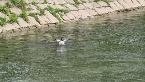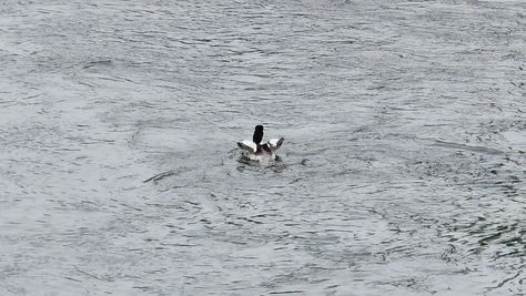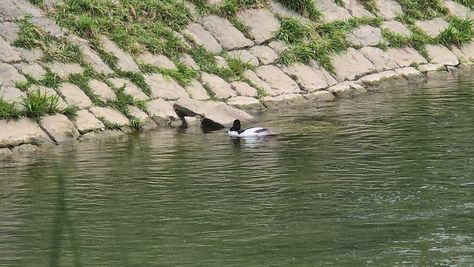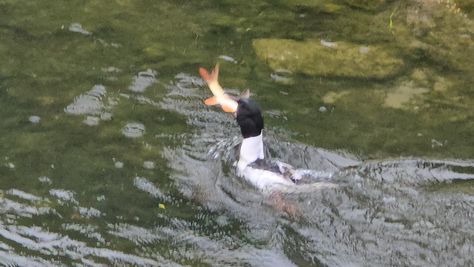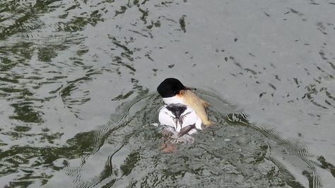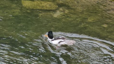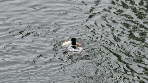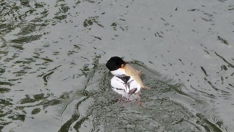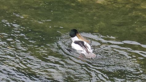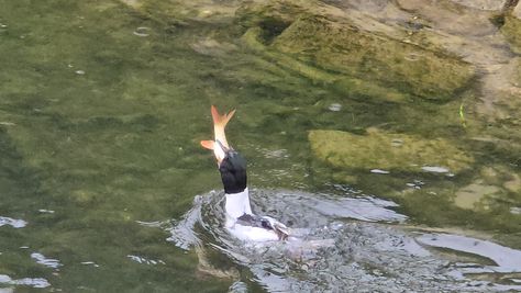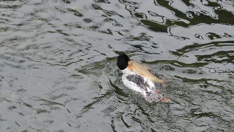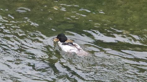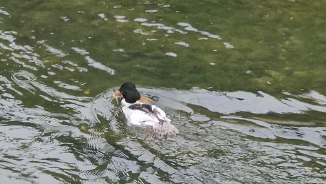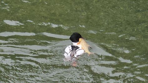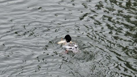 Popoldne v ZD Moste iskat napotnico za mamo. Tja čez Botanični vrt, grajsko planoto in mimo Sv. Jožefa do Ljubljanice … pogledat, če je slučajno cerkev na Kodeljevem odprta … ravno upokoj. beograjski nadškof je imel obisk in je bil v cerkvi … nazaj še do sotočja Gruberjevega kanala in Ljubljanice – obenem še pogledat, če je kje kakšen vodomec … še lepše, nazaj grede je veliki žagar lovil ribe, naenkrat poskočil potem pa podvodno šibal za ribo … in potem sta prišla ven … kaj če mladosten samec s tako veliko ribo … Nazaj z vzpenjačo … a je bila vrsta, kar ob stolnici in čez Staro Ljubljano … ob Ljubljanici do Špice, v Botanični vrt – siva čaplja lovila riba … potem pa proti domu. ob poti